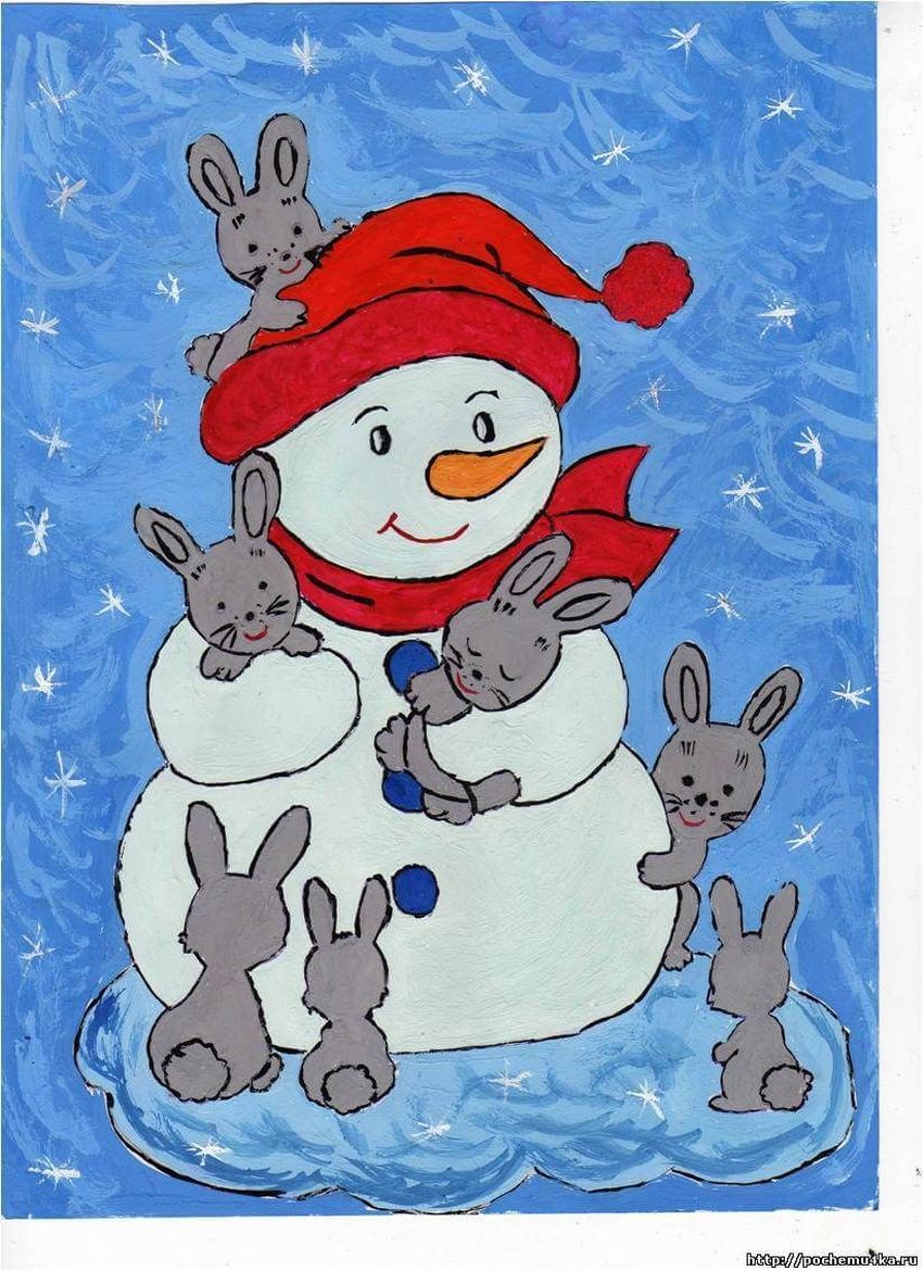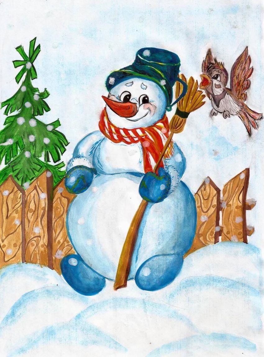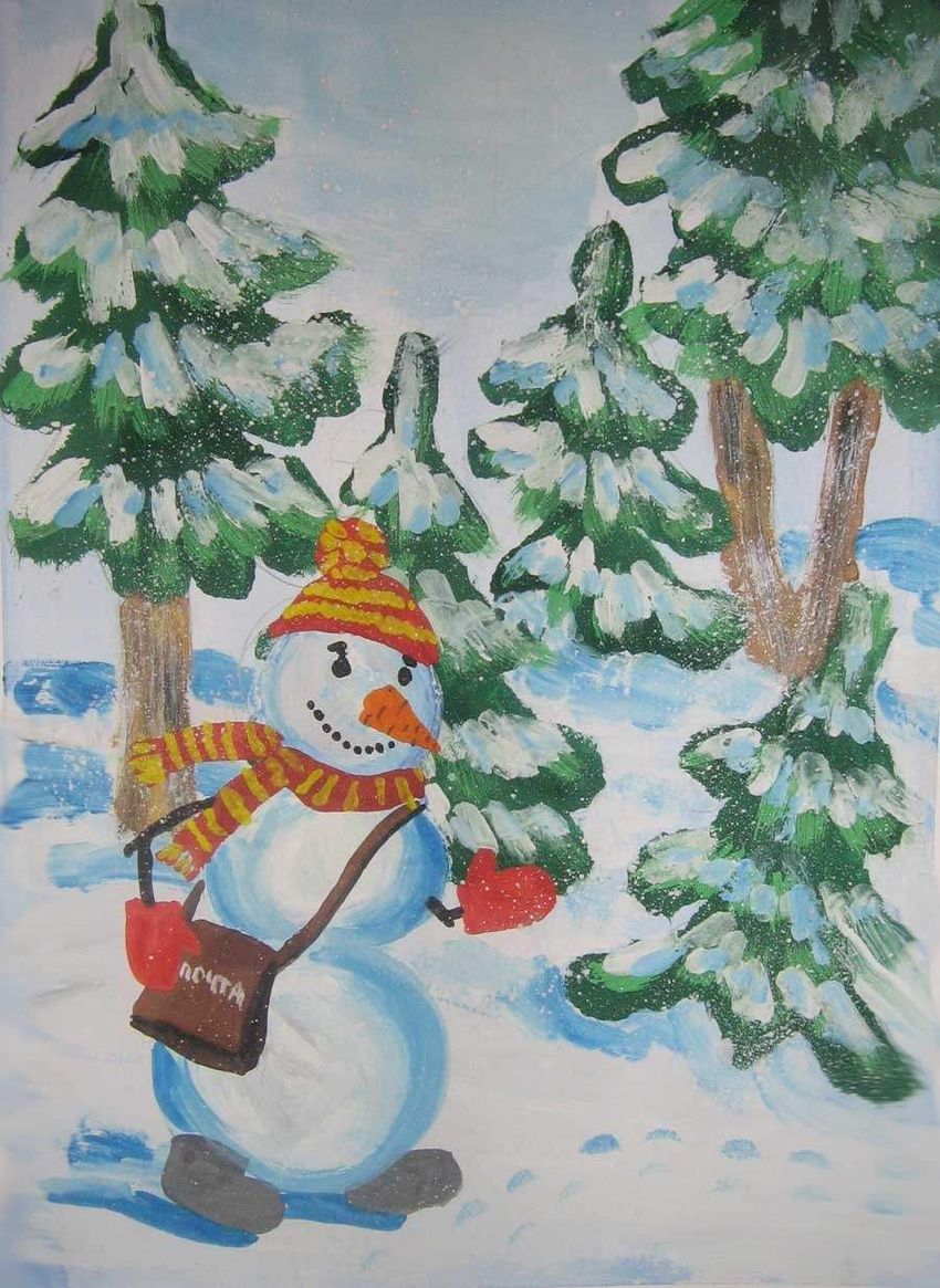 Картина гуашью снеговик