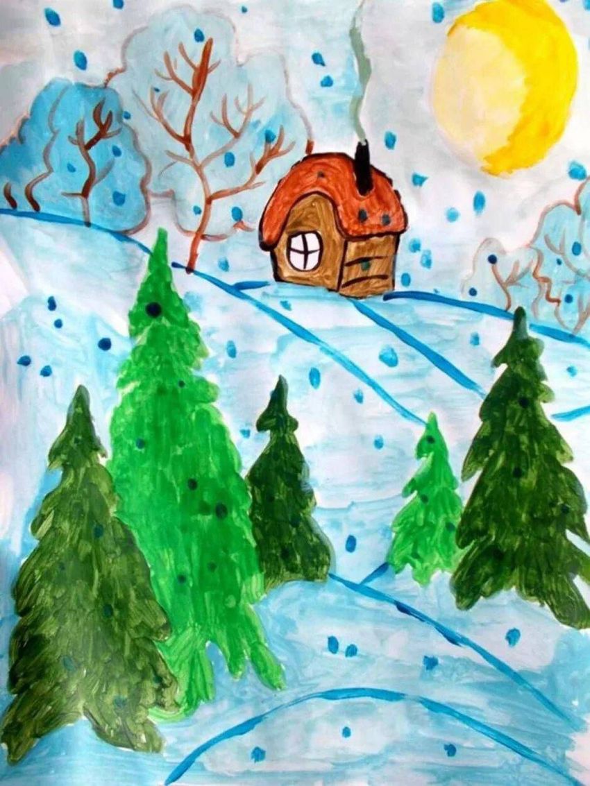 Детские рисунки на тему зима