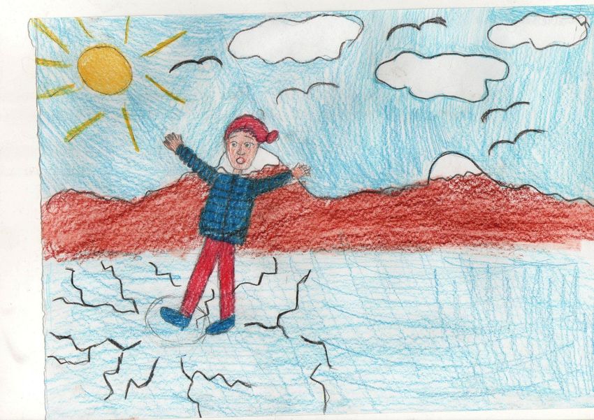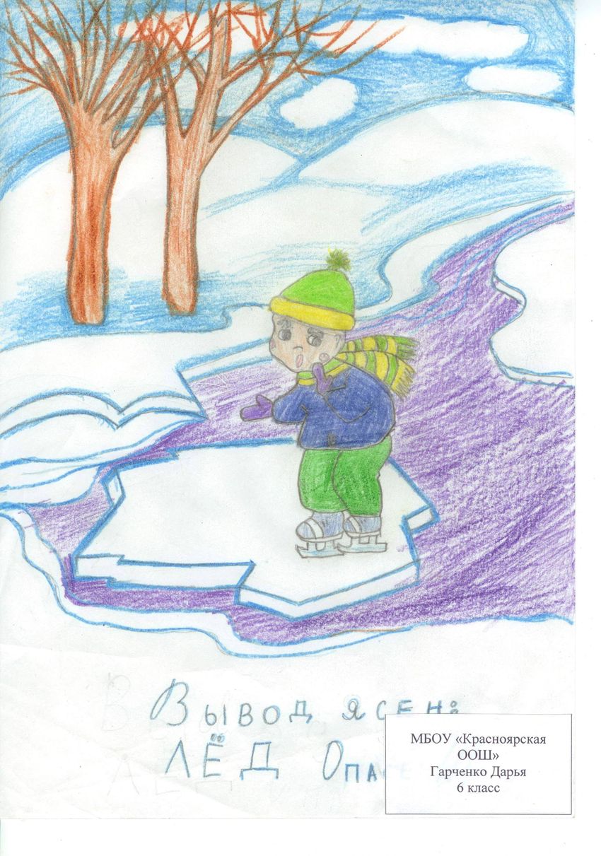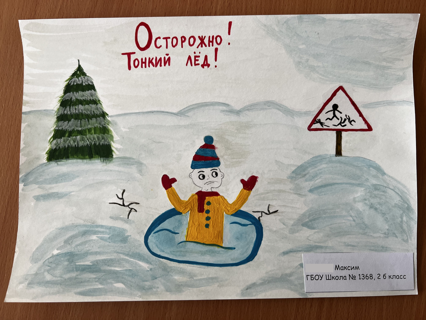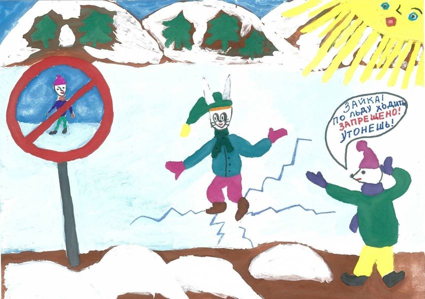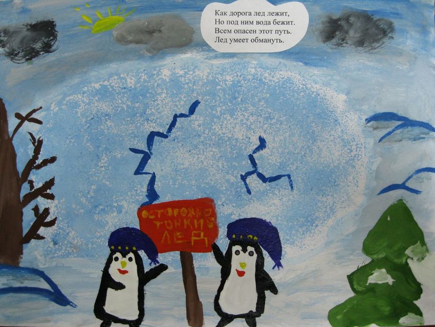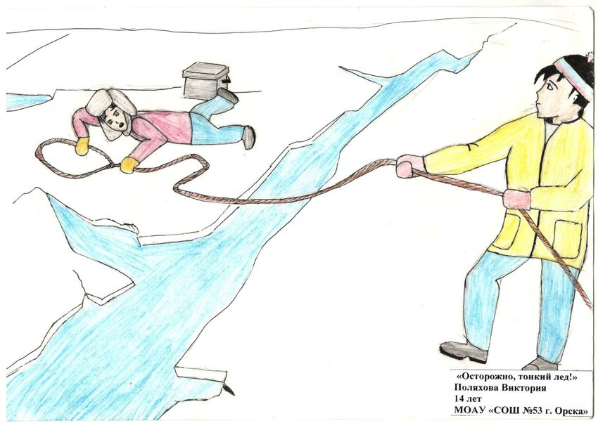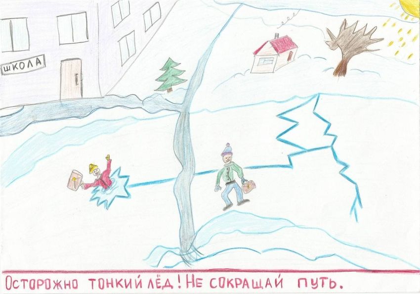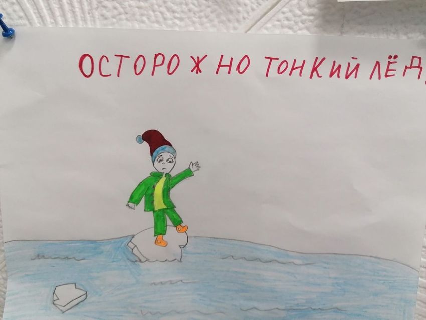 Рисунок Осторожно тонкий лед – участие в конкурсе, отражая важность безопасности на замерзших водоемах. Простые линии передают хрупкость льда, подчеркивая акцент на предупреждении о потенциальных опасностях. Этот рисунок становится визуальным напоминанием о заботе о своей безопасности и привлекает внимание к необходимости соблюдения предосторожности на льду.