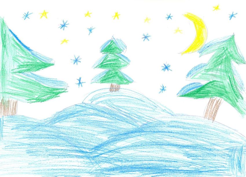 Бумага заполнена изображением зимы, предназначенным для четвероклассников. Формы и линии передают характер зимы. Художник ловко воплощает атмосферу зимних занятий и развлечений, создавая интересное пространство для детей. Рисунок приглашает четвероклассников на путешествие по увлекательным зимним забавам и приключениям.