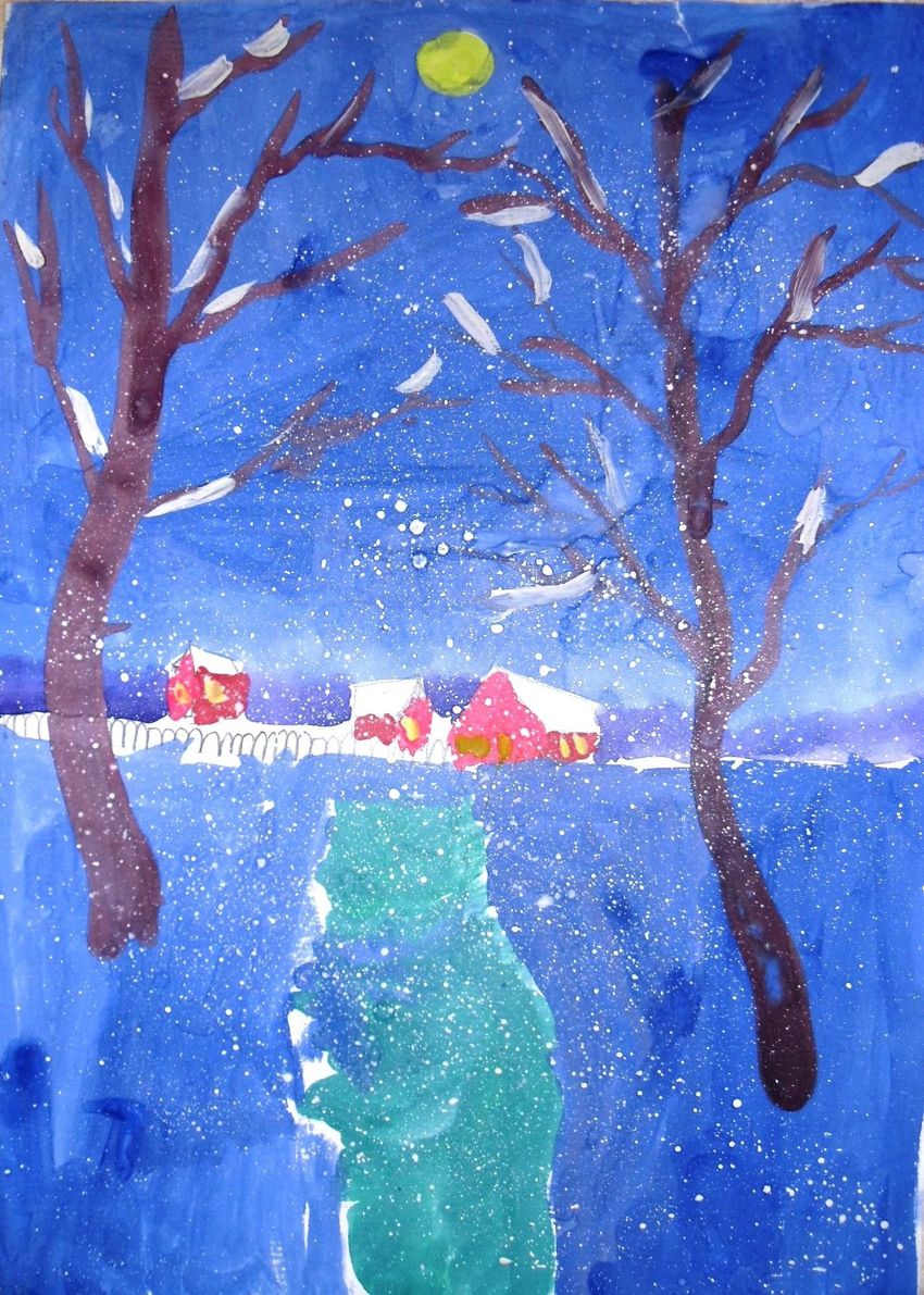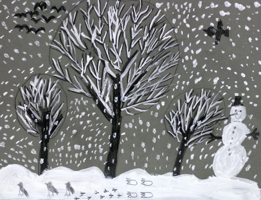 Первый снег рисунки детей