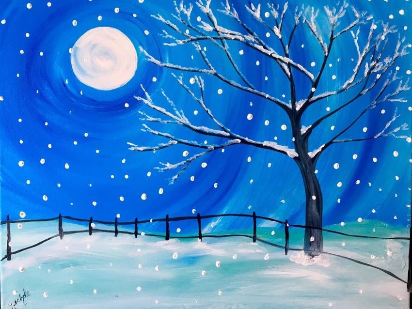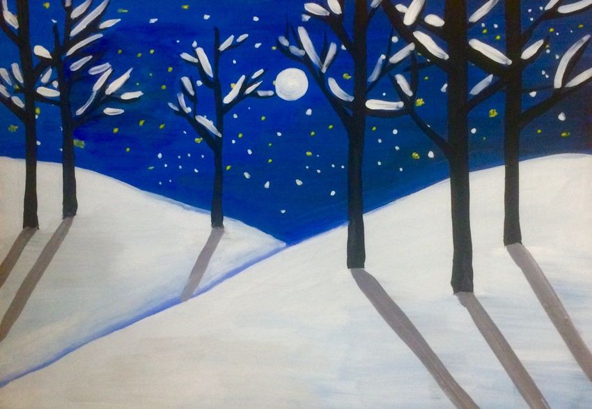 Зимняя ночь гуашью