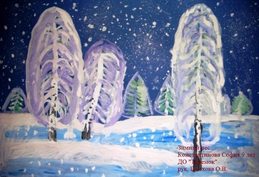 Рисунок на тему зимний лес