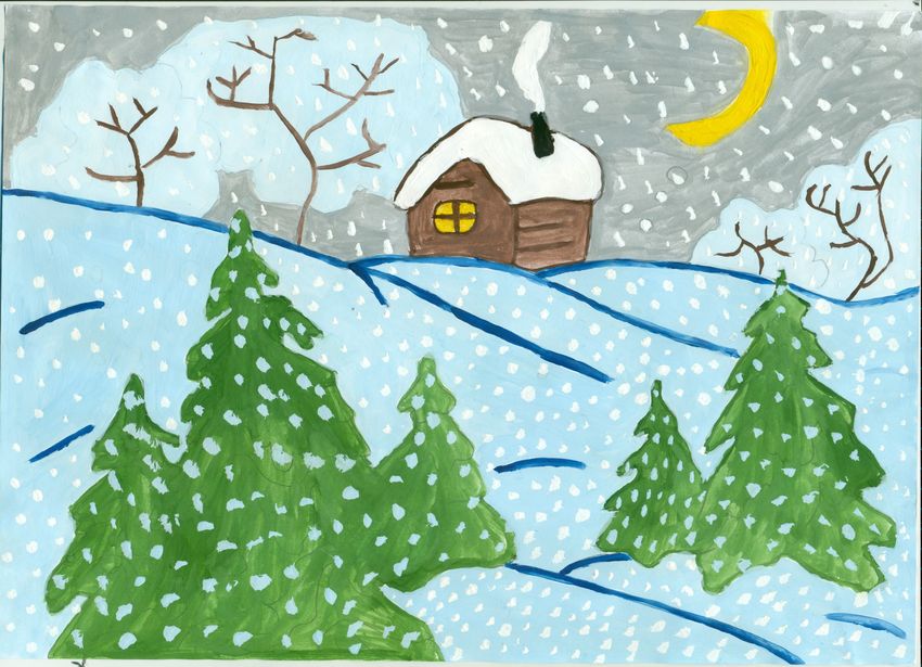 Детские рисунки на тему зима