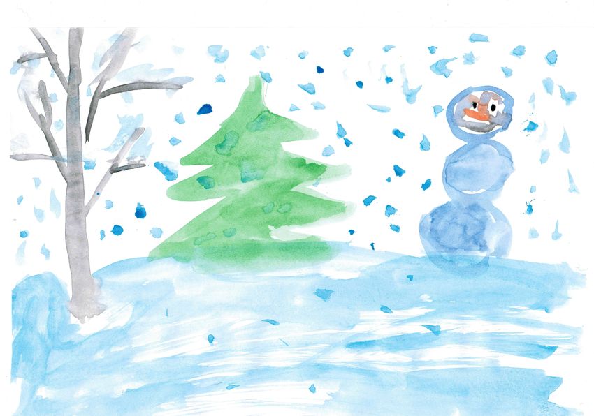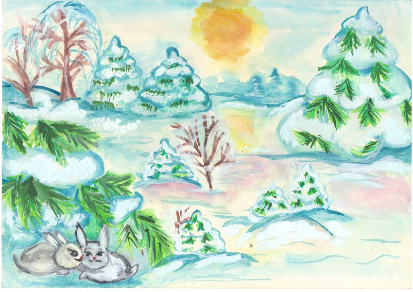 Бумага передает момент, когда зима пришла. Линии и формы воссоздают облик измененного сезона. Художник мастерски передает атмосферу первых дней зимы, создавая образ природного перехода. Рисунок приглашает зрителя обратить внимание на детали этого момента, внушая чувство изменений и начала нового времени года.