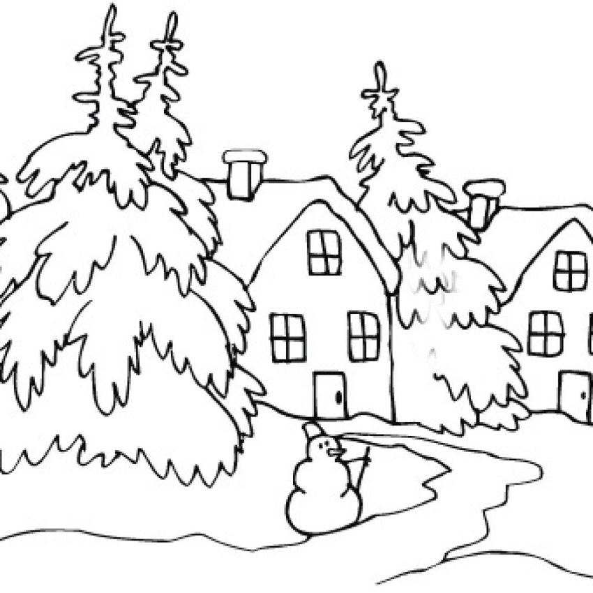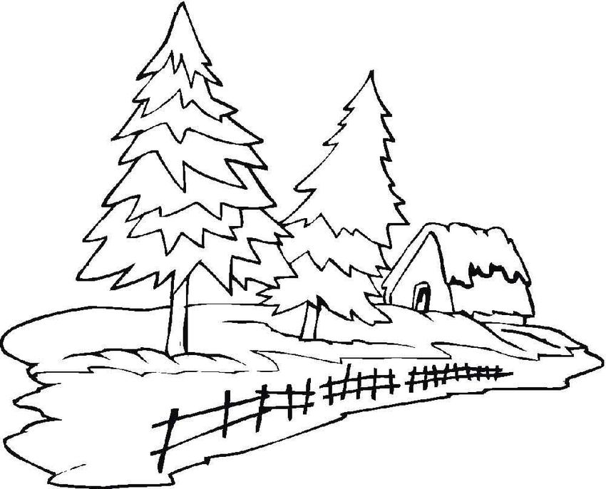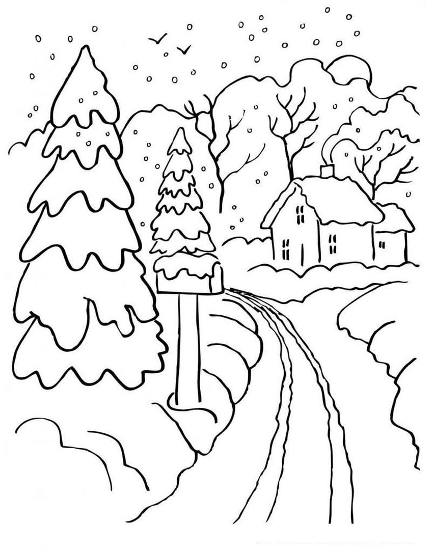Зимний пейзаж раскраска