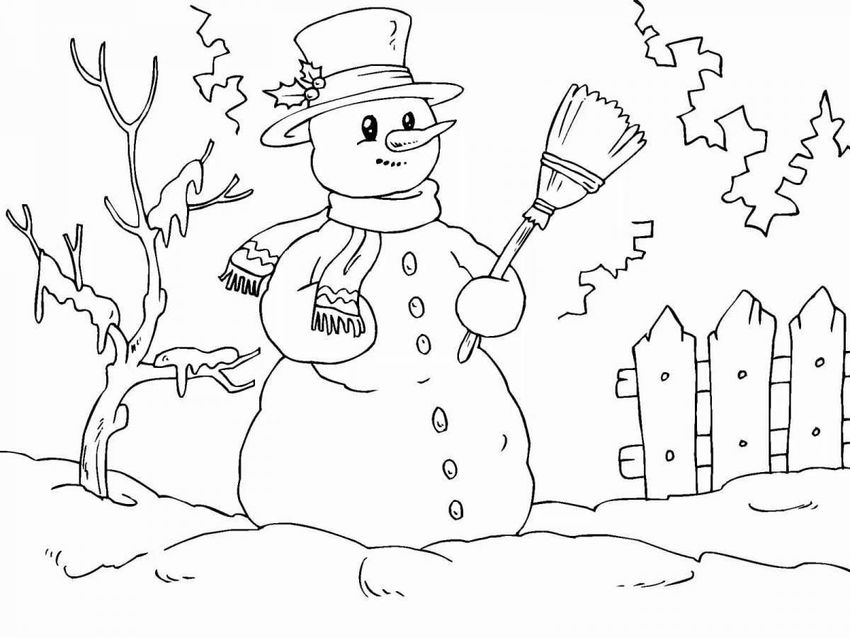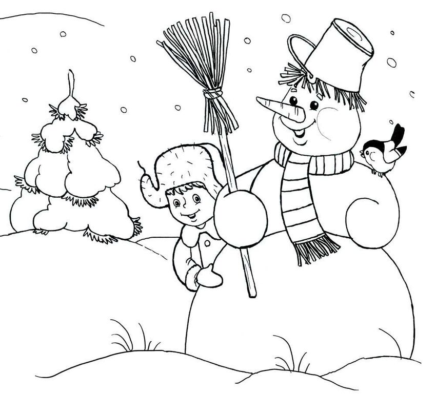Зимние раскраски снеговик