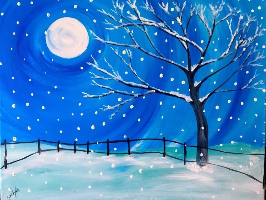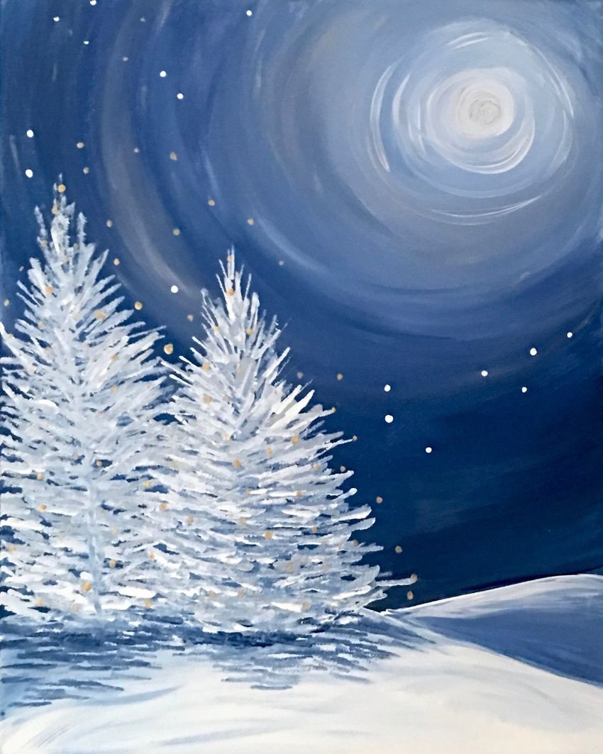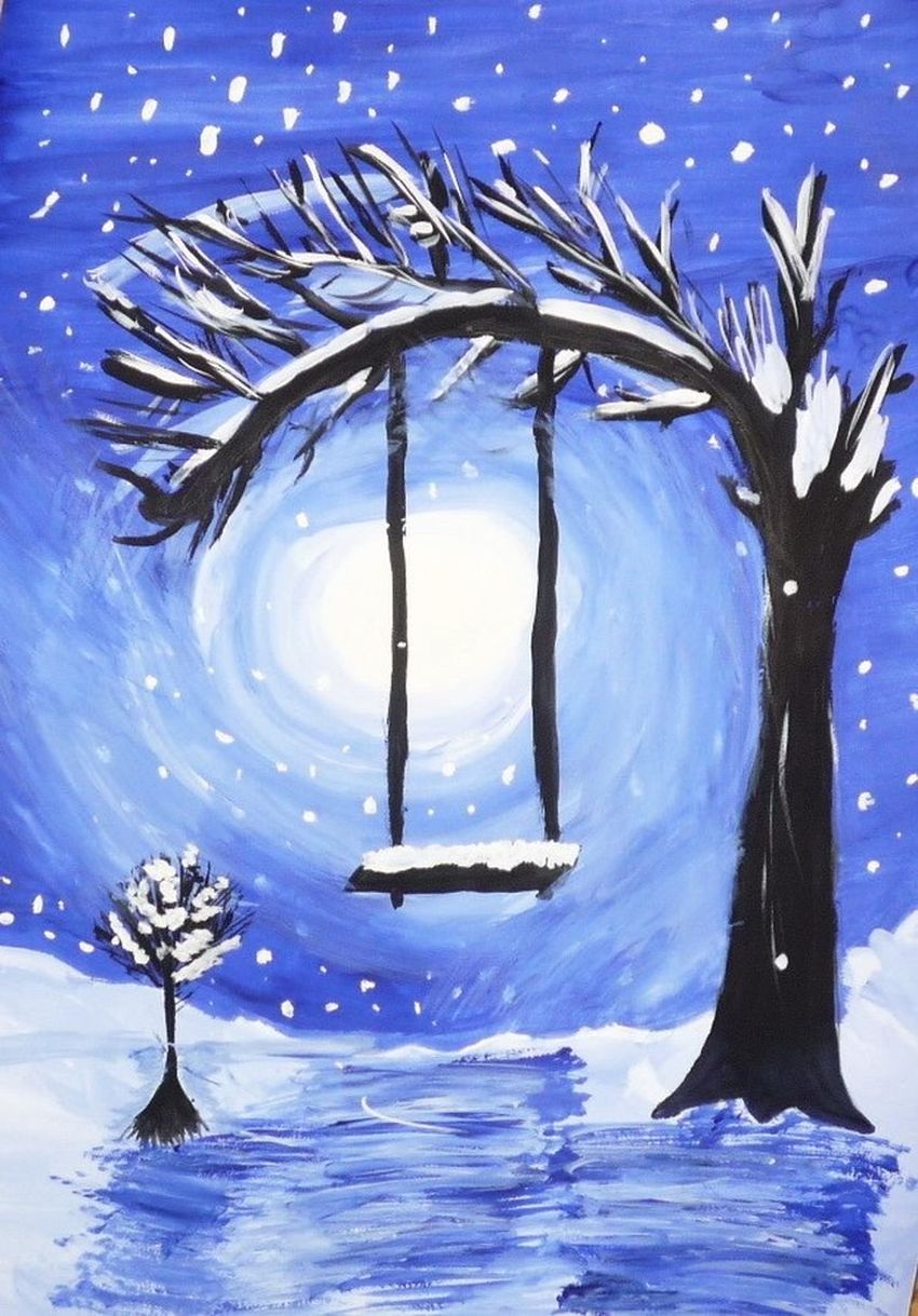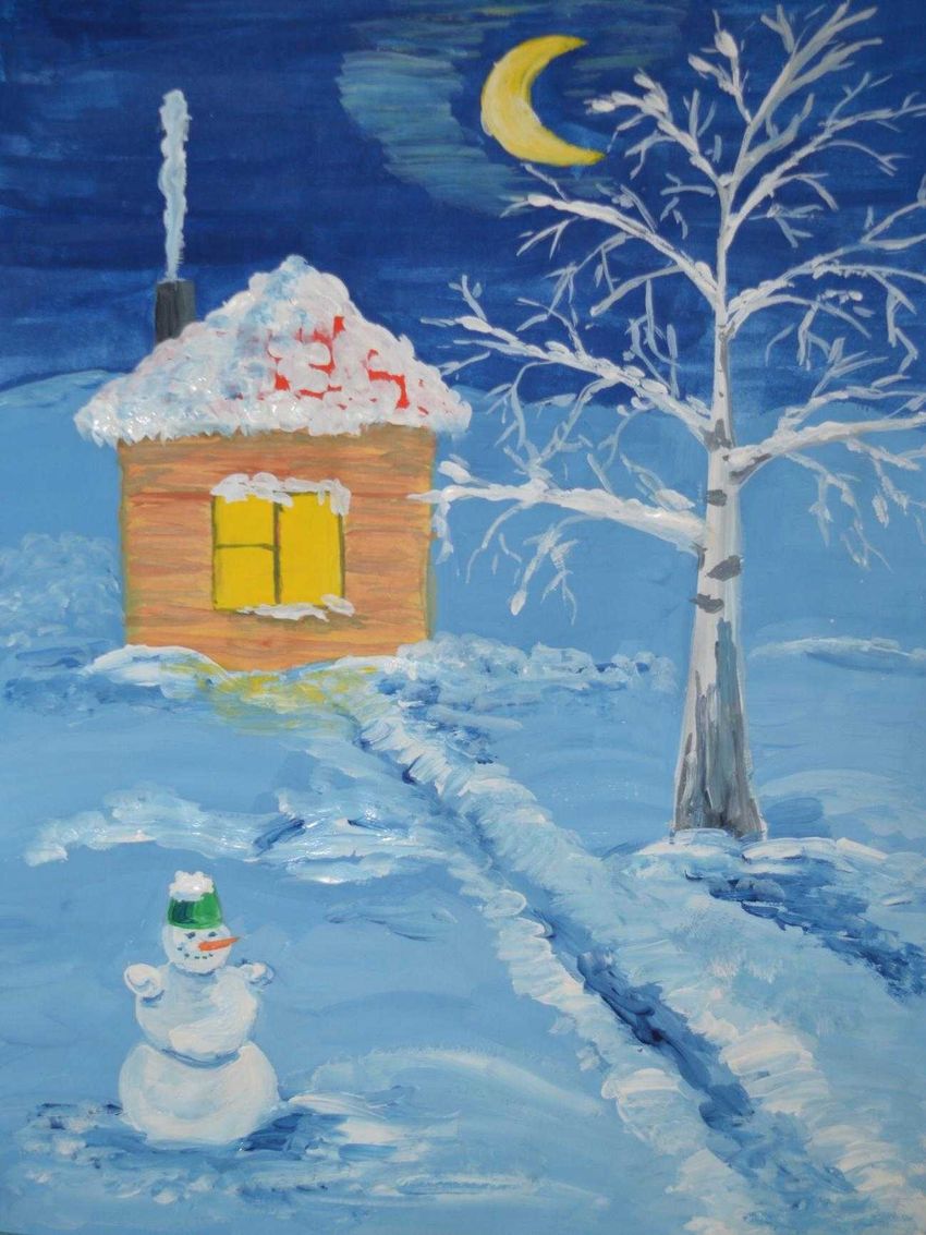 Зимняя ночь рисунок красками