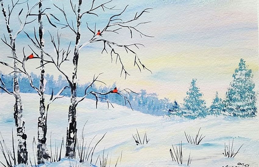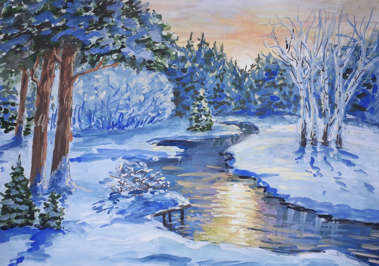 Зимний пейзаж красками