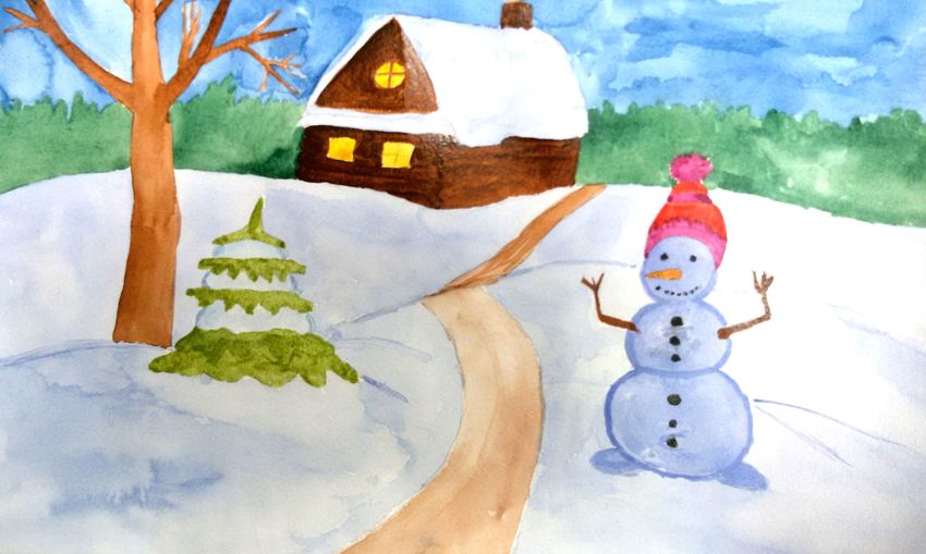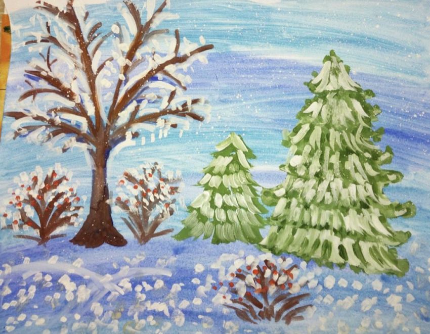 Зимние рисунки гуашью