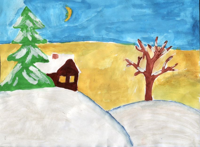 Зимние пейзажи рисунки детей