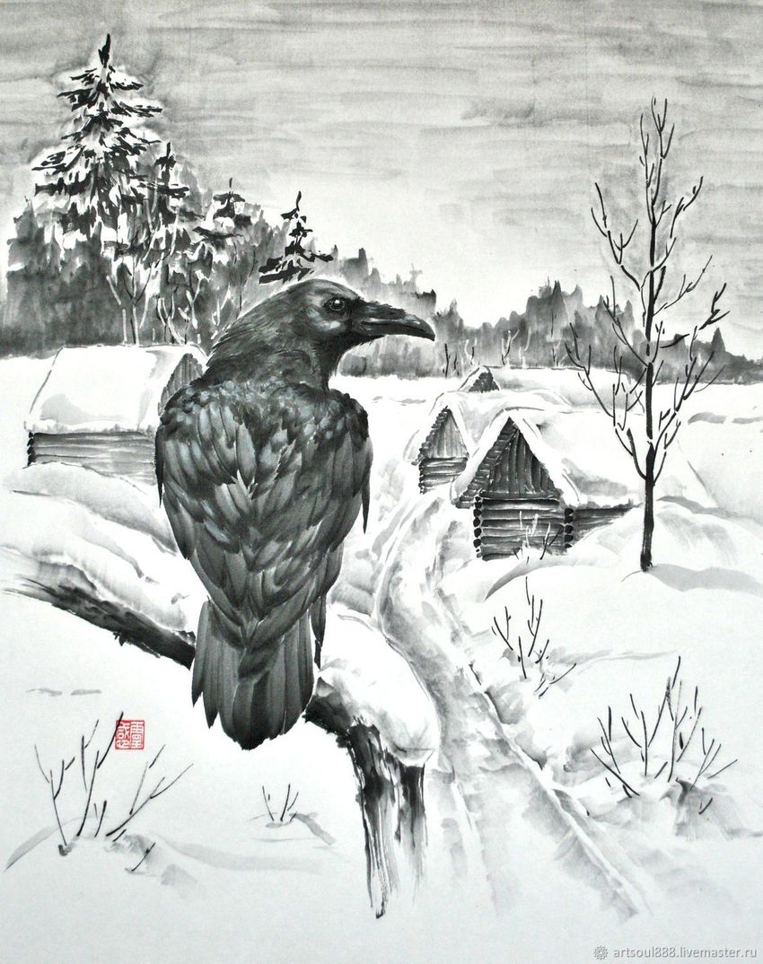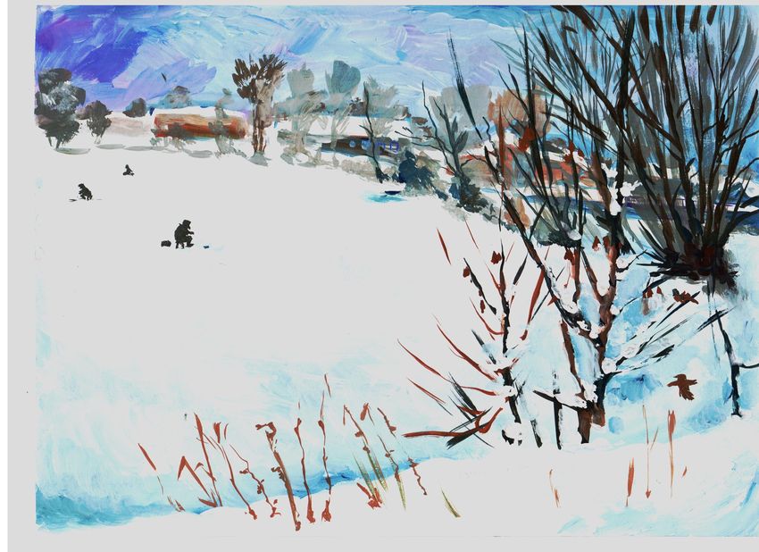 На бумаге оживает зимнее Забайкалье. Линии пера тянутся, создавая силуэты гор, покрытых белым покрывалом снега. Реки изображены как мерцающие нити, между которыми располагаются деревни с традиционными домами. Зимнее солнце мягко освещает холодный пейзаж, а ветви деревьев, загораживая вид на далекие горы, создают ощущение уюта. Этот рисунок передает атмосферу спокойствия и красоты зимнего Забайкалья, перенося зрителя в мир снежных просторов и сибирской таежной тишины.