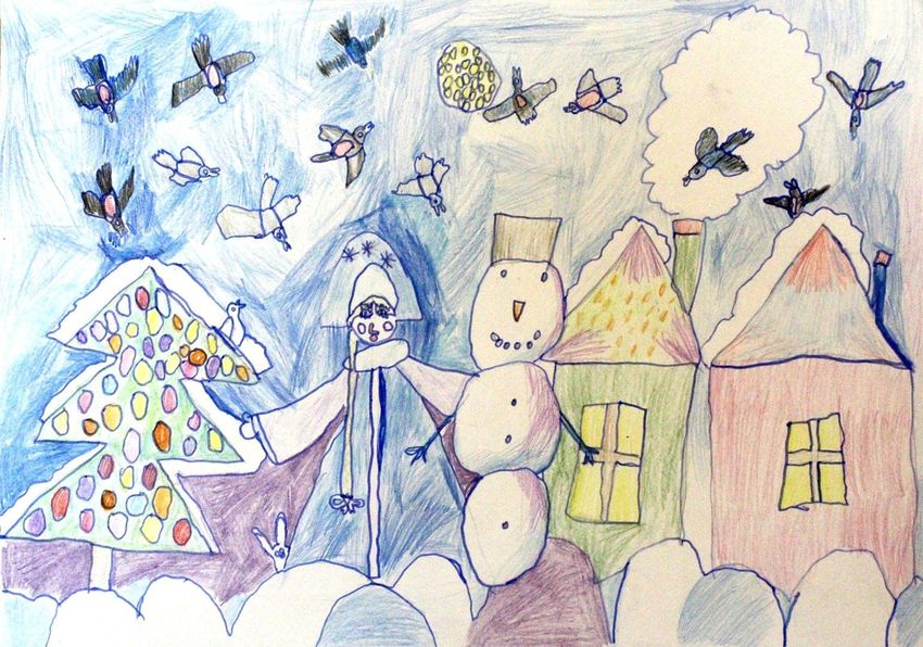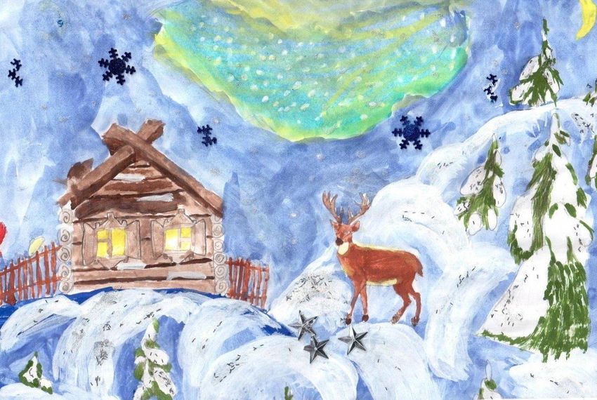 Бумага оживает под рукой шестиклассника, воплощающего зимнюю сказку. Линии и цвета создают живописный лес, в котором каждый элемент природы становится частью удивительной истории. Рисунок, как ворота в фантастический мир, открывает перед нами волшебную картину, созданную мастерством юного художника.