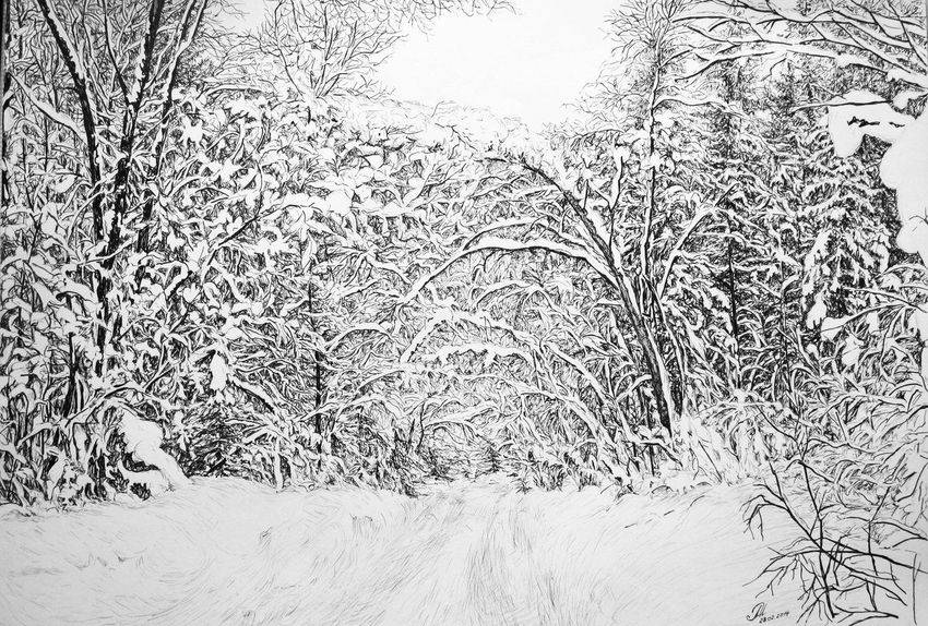 Зимний пейзаж ручкой