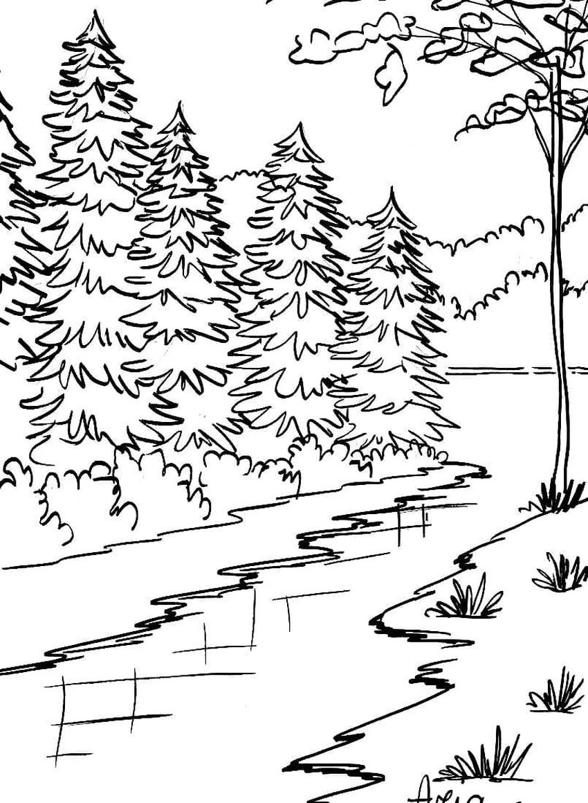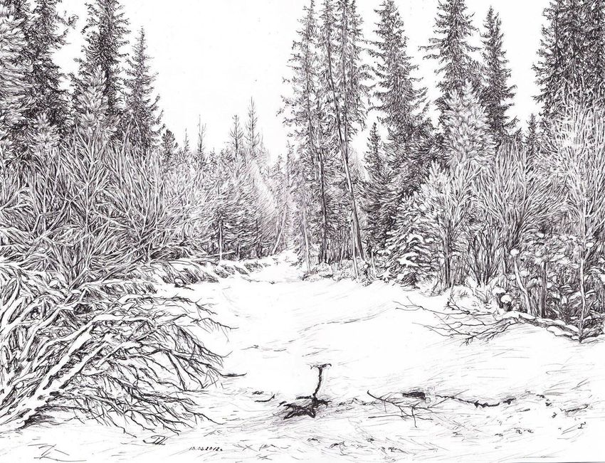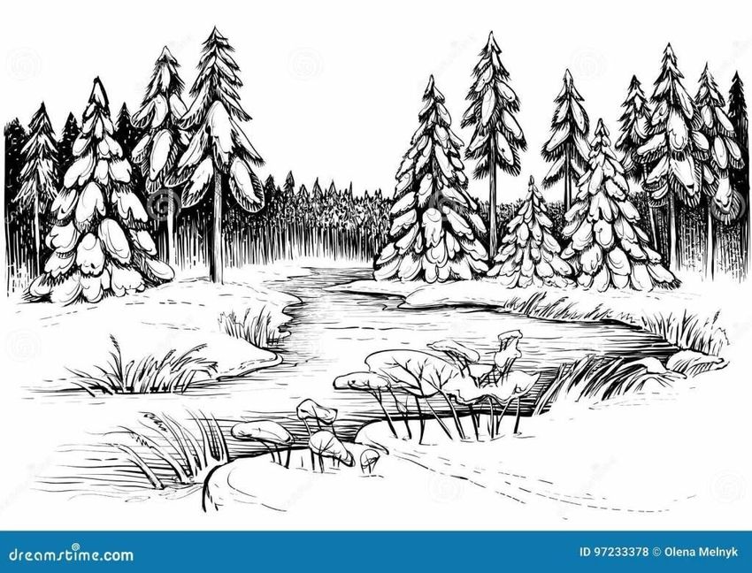 Тайга рисунок карандашом