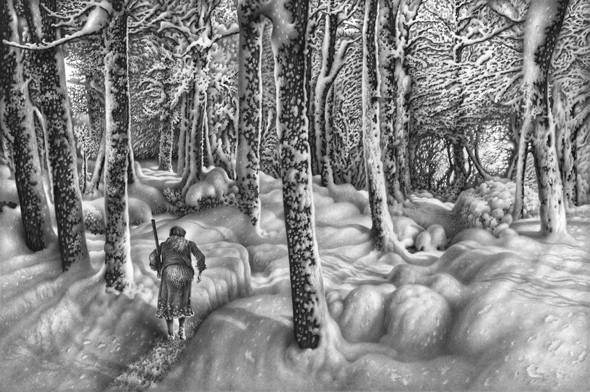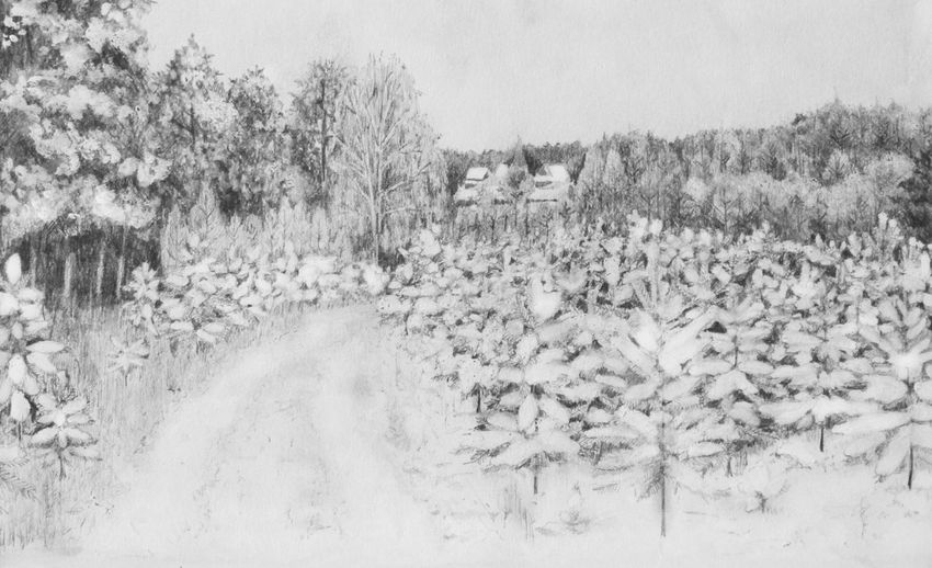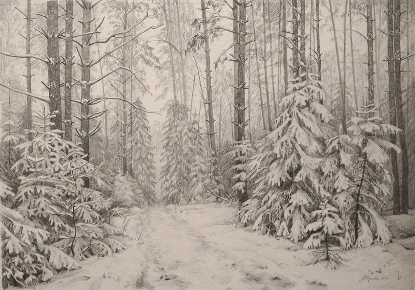 Зимний лес карандашом