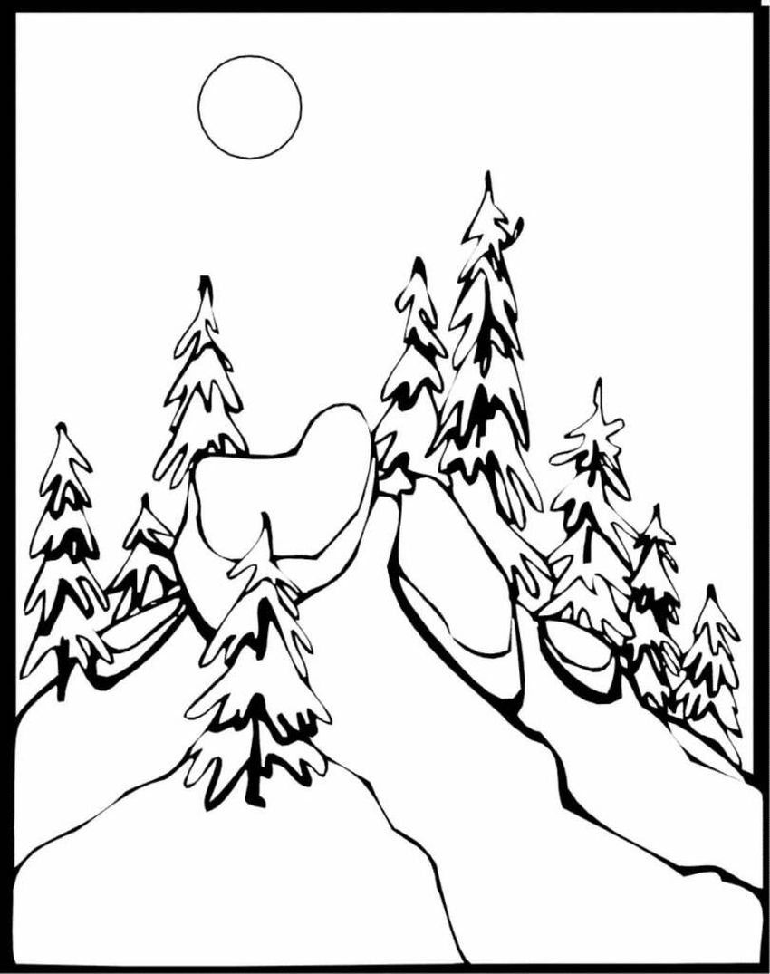 Зимний пейзаж раскраска