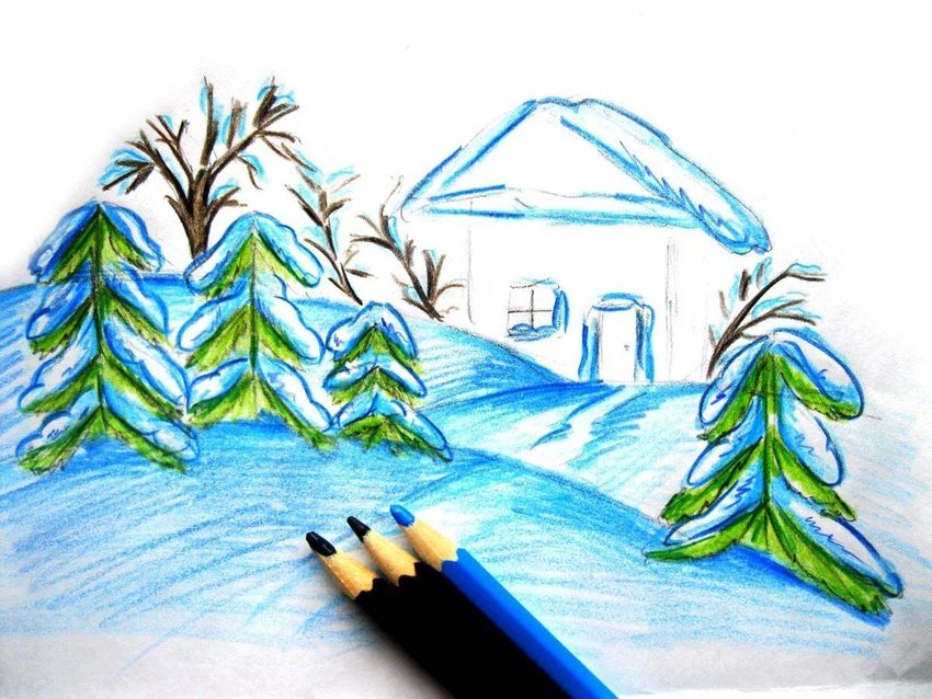 Рисунок зимний пейзаж
