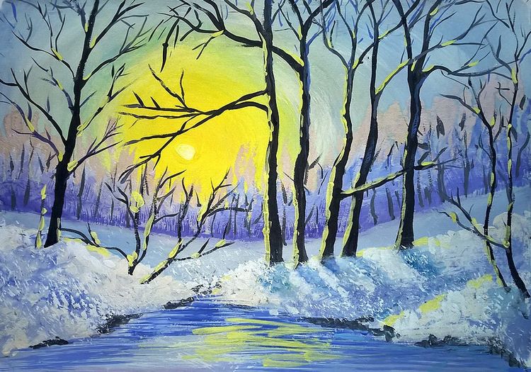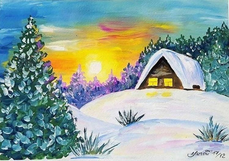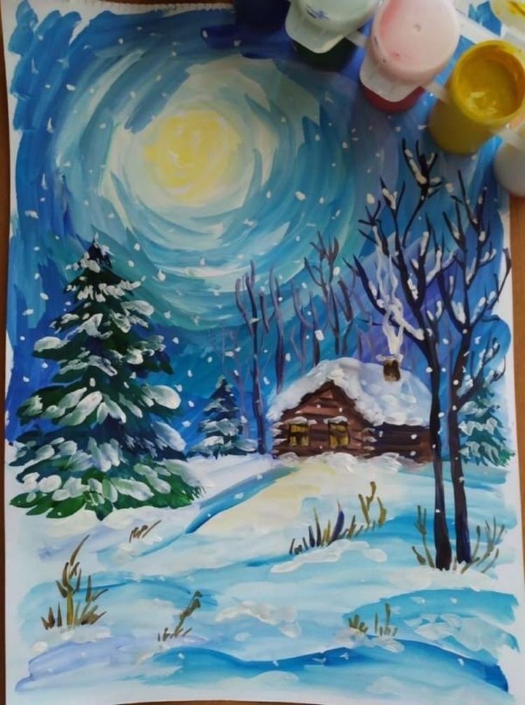 Зимний рисунок гуашью можно создать с помощью ярких и насыщенных красок. Холодные оттенки синего, фиолетового и белого идеально передают атмосферу зимнего пейзажа. Деревья, покрытые снегом, искрятся на солнце, а ледяные озера отражают яркие лучи света. Создание зимнего рисунка гуашью — отличный способ провести время, поразить друзей и близких своим творческим талантом.