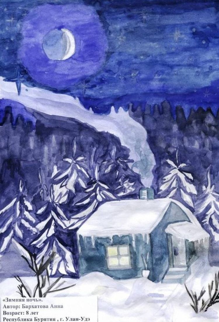 Рисунок зимняя ночь