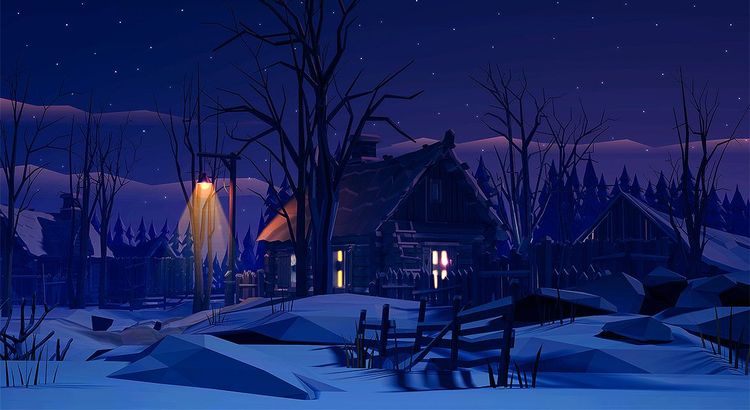 Зимняя ночь в деревне