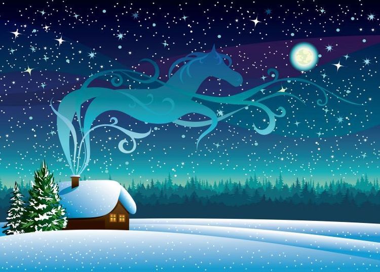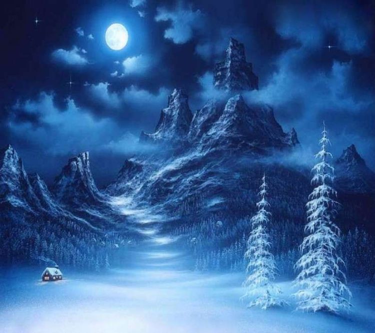 Зимняя ночь в лесу фэнтези