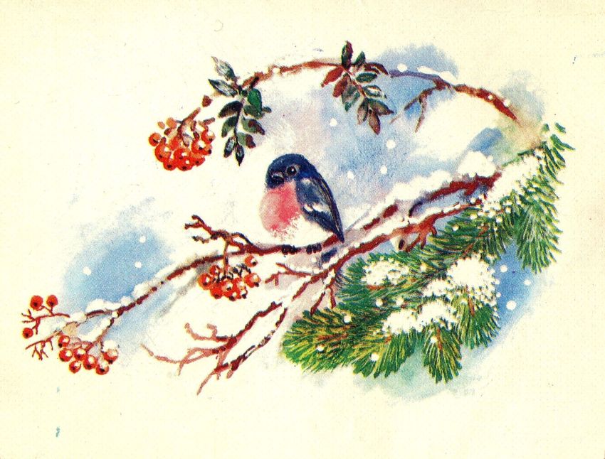 Новогодние открытки со снегирями