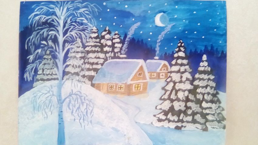 Зимняя ночь рисунок красками