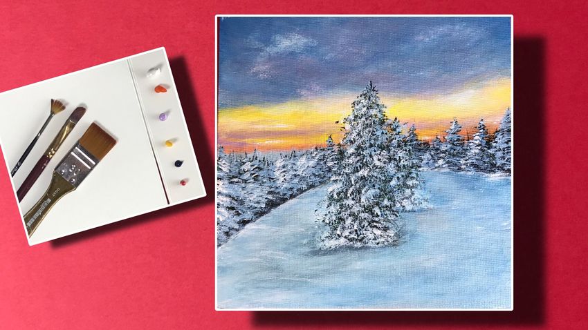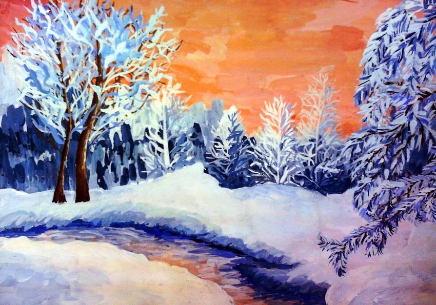 Зимний пейзаж красками
