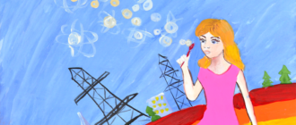 Никитке любопытно, вышел на поляну смело. А медвежонок к нему закосолапил. Подошел, мордой тычется. Вынул Никитка пирожка кусочек, отломил половину. Медвежонок съел и еще просит. Отдал он и другую. Наелся медвежонок, встал на задние лапы: поиграть ему захотелось. Тут Никитка почувствовал, будто сзади кто на него смотрит. Оглянулся и обмер со страху: на кромке поляны медведица стоит. Хотел бежать, да ноги словно ватные, хотел закричать, да голоса нет. А медведица подошла, обнюхала, заурчала ласково и лизнула в щеку.
